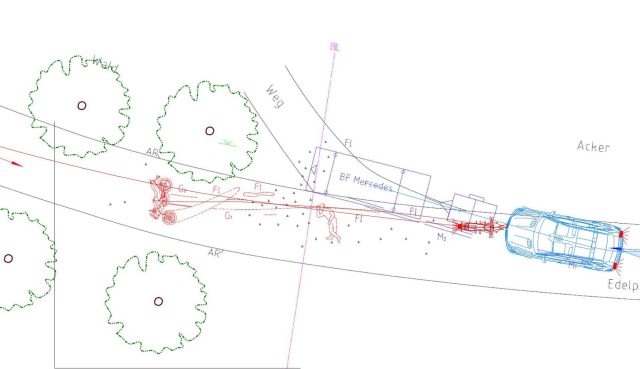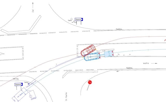 Широкие инструменты начертания AnalyzerPro также включают инструменты рисования дорог, перекрестков и кругового движения. Арсенал также включает базу данных для дорожных знаков, которые могут быть просто и эффективно нанесены несколькими щелчками мыши в 2D и 3D. Тестовые и конечные позиции транспортных средств могут быть также быстро и легко расположены.